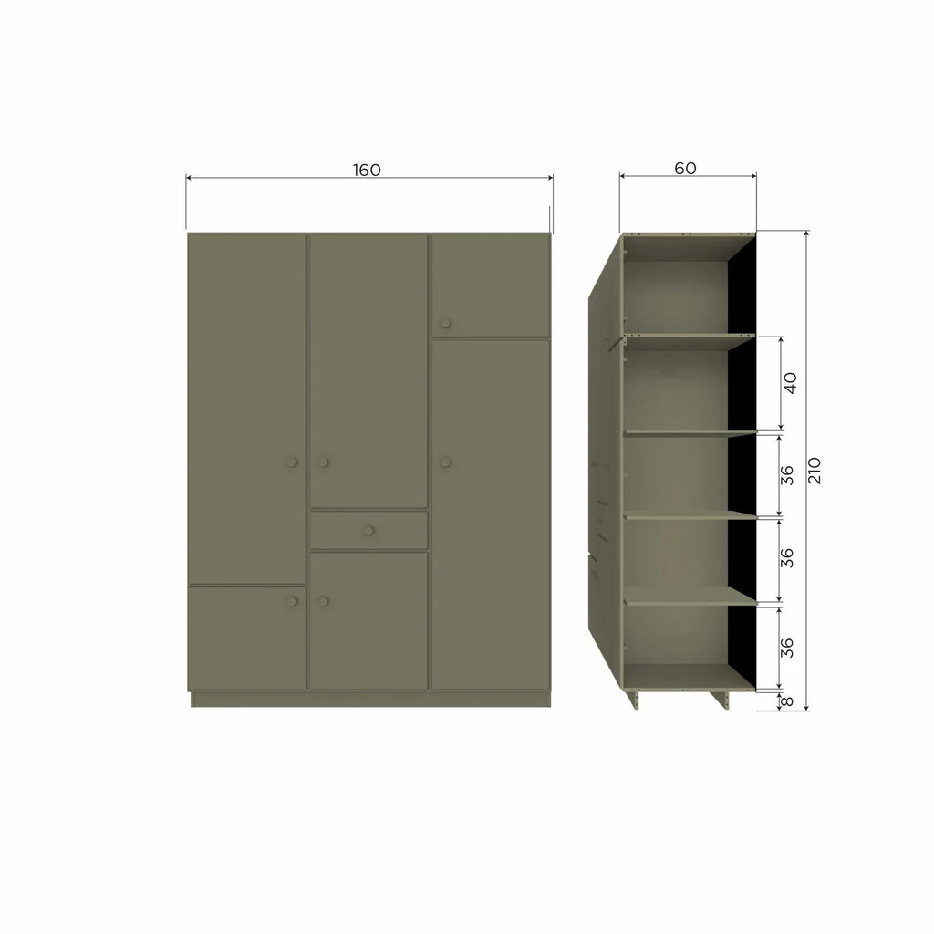 - Option package for extra shelves Alfie wardrobe - Tough basic wardrobe - Made of pine - H 2 cm x W 52 cm x D 57 cm The timeless Alfie wardrobe comes from the collection of Dutch interior design brand WOOOD. Made of FSC-certified pine wood, this wardrobe features a beautiful shade of green. With seven spacious compartments and a sturdy rod, Alfie offers plenty of storage space for your clothes. It is also a stylish addition to your bedroom or dressing room. With the Alfie shelf set you can create even more storage space in no time. Material The pine furniture in our collections is FSC-certified and treated in various ways. For example, sanded pine is smooth and neatly finished and brushed pine is known for its characteristic grain marks and aged look. For an even more robust look, pine is band sawn. Pine is characterised by visible flame and grain marks. Dimensions - Height: 210 cm - Width: 107 cm - Depth: 60 m - Weight : 6.5 kg Maintenance The pine items in our collections are treated with an environmentally friendly, water-based lacquer which significantly prolongs the life of the product. Treated pine is easy to keep clean with a slightly damp cloth. To avoid circles and spots in the wood, it is recommended to dry damp stains immediately. Delivery The article is delivered in a package with a minimum order of one piece. The article is easy to assemble using the supplied assembly instructions.