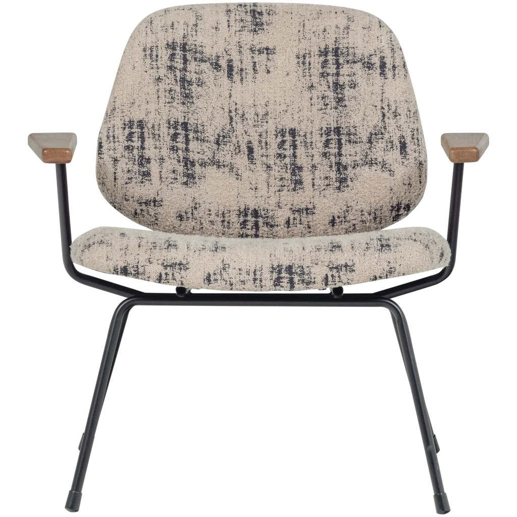 - Stylish armchair - Upholstered with a woven fabric (100% polyester) - An eye-catcher - H 69 cm x W 69 cm x D 64 cm Relax in comfort and style with this Aure easy chair by Dutch interior design brand WOOOD. The armchair is upholstered in a soft woven fabric and has a sturdy black metal base. The Aure is the perfect place where design and comfort come together. This is guaranteed to be your new favorite place to relax, read or just do nothing. Material The Aure armchair is upholstered in our Olly fabric. Our Olly fabric has a rugged look and feel. The fabric is made of 100% polyester and has an irregular pattern which gives the furniture a robust effect. The fabric has a martindale of 40,000. Dimensions - Height: 69 cm - Width: 69 cm - Depth: 64 cm - Seat height: 44 cm - Seat width: 61 cm - Seat depth: 59 cm - Back height: 17.5 cm - Backrest width: 62.5 cm - Armrest height: 17.5 cm - Armrest width: 6 cm - Foot height: 33 cm - Weight: 7.5 kg - Weight capacity: 120 kg Maintenance Keep it clean by vacuuming regularly. Use a vacuum cleaner with a soft brush to avoid damaging the structure. If stains appear on the fabric, it is important to treat them quickly to prevent them from soaking into the fabric. Use a clean, slightly damp cloth (not too wet) to gently dab off the stains. Avoid rubbing, as this may push the stain further into the fabric. Avoid prolonged exposure to direct sunlight to maintain the best quality of the fabric. Delivery The item is delivered by the piece. To protect hard floors, place felt glides on the underside of the legs.