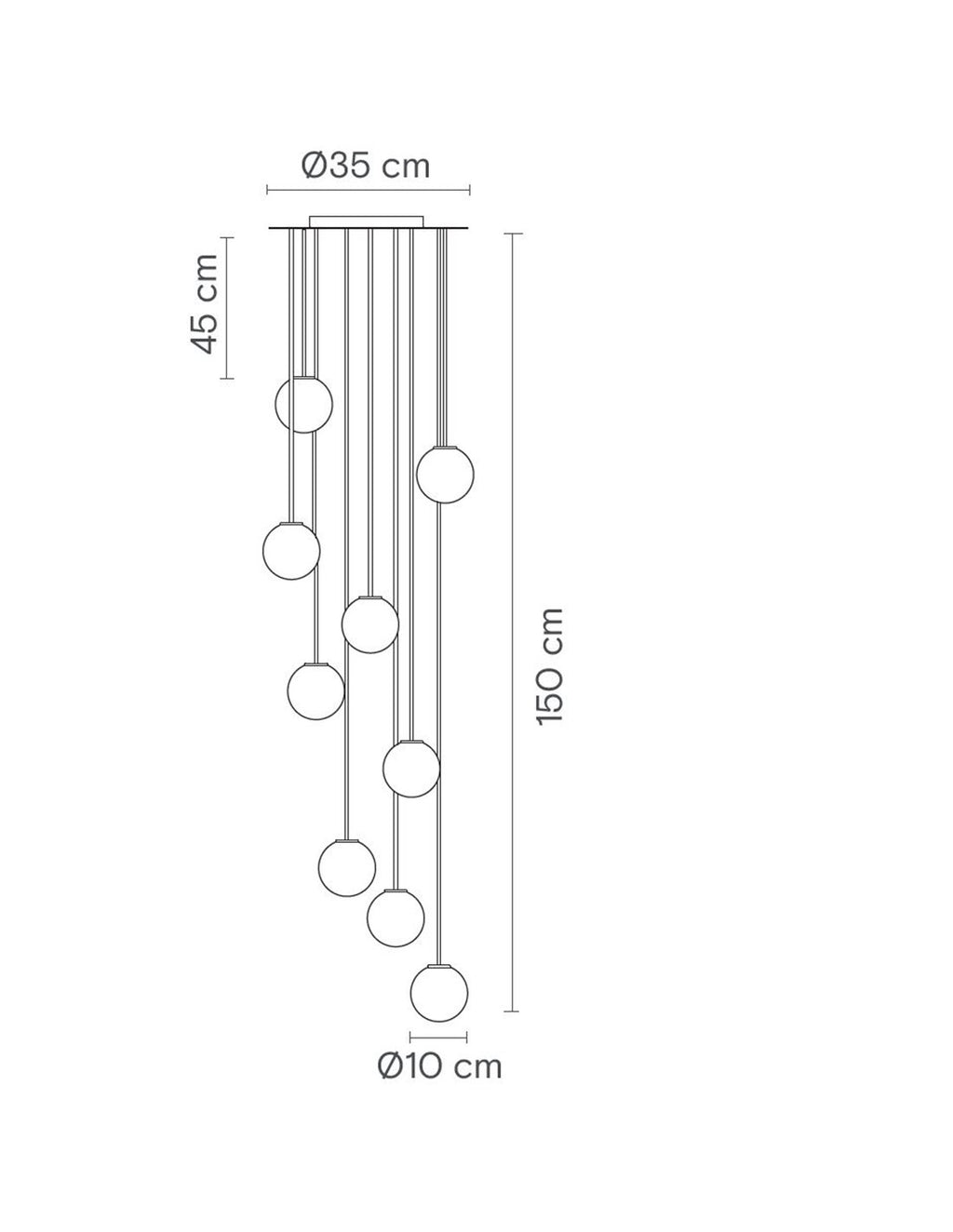 • Materiale: Structură din fier auriu, sfere din alabastru natural, cablu textil auriu