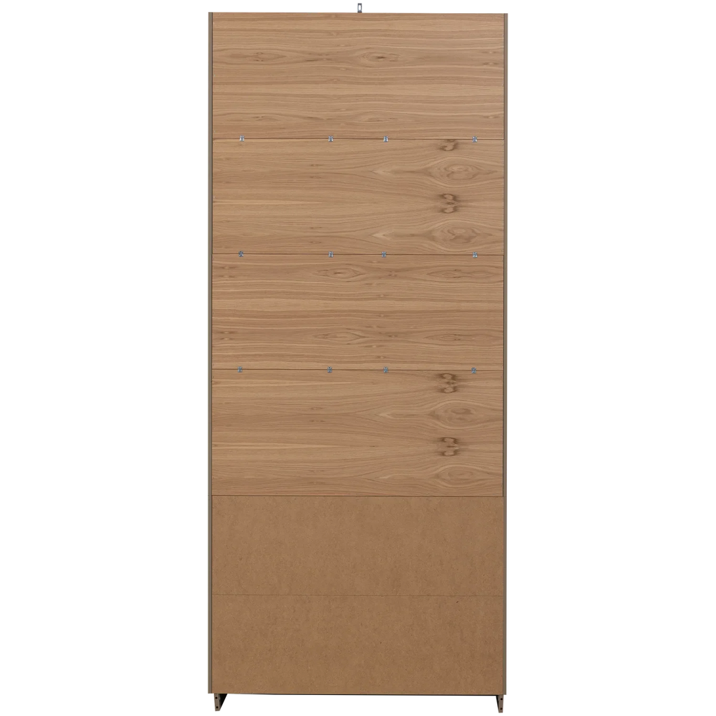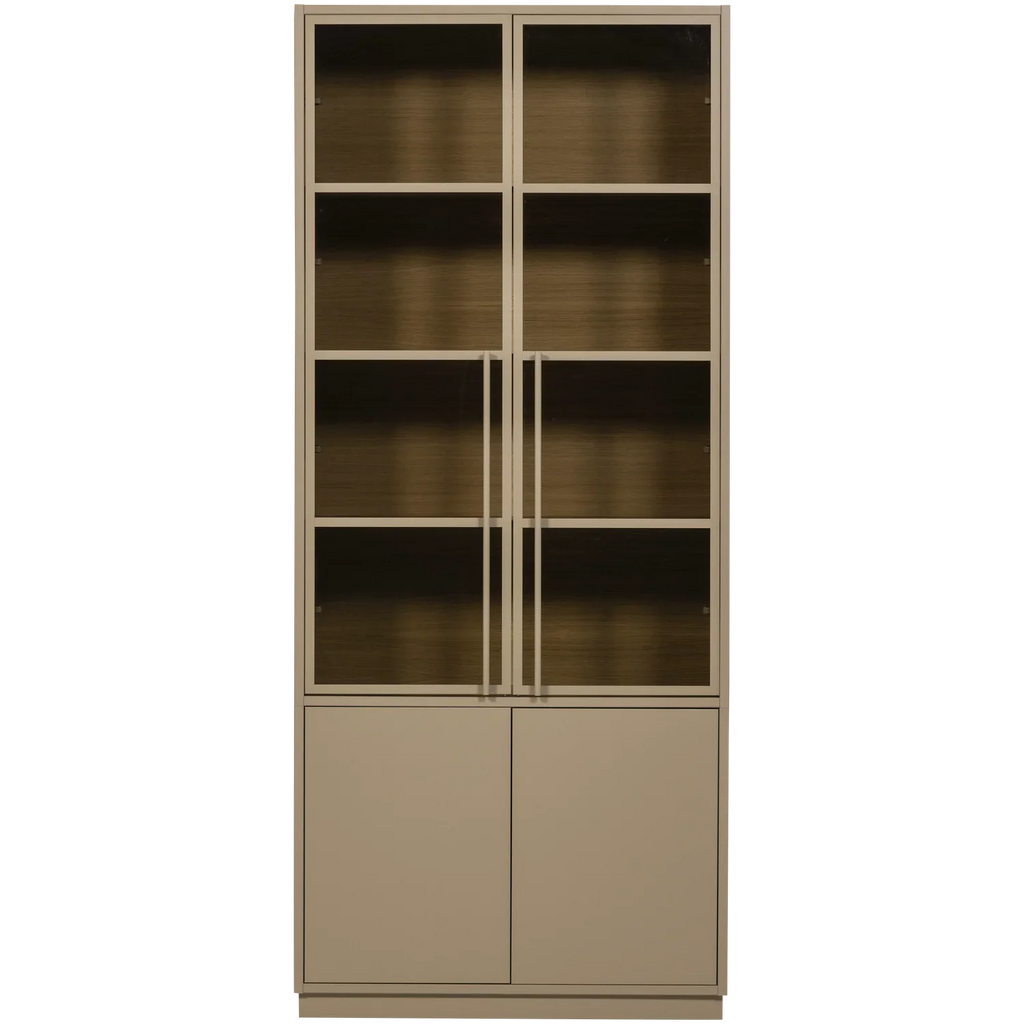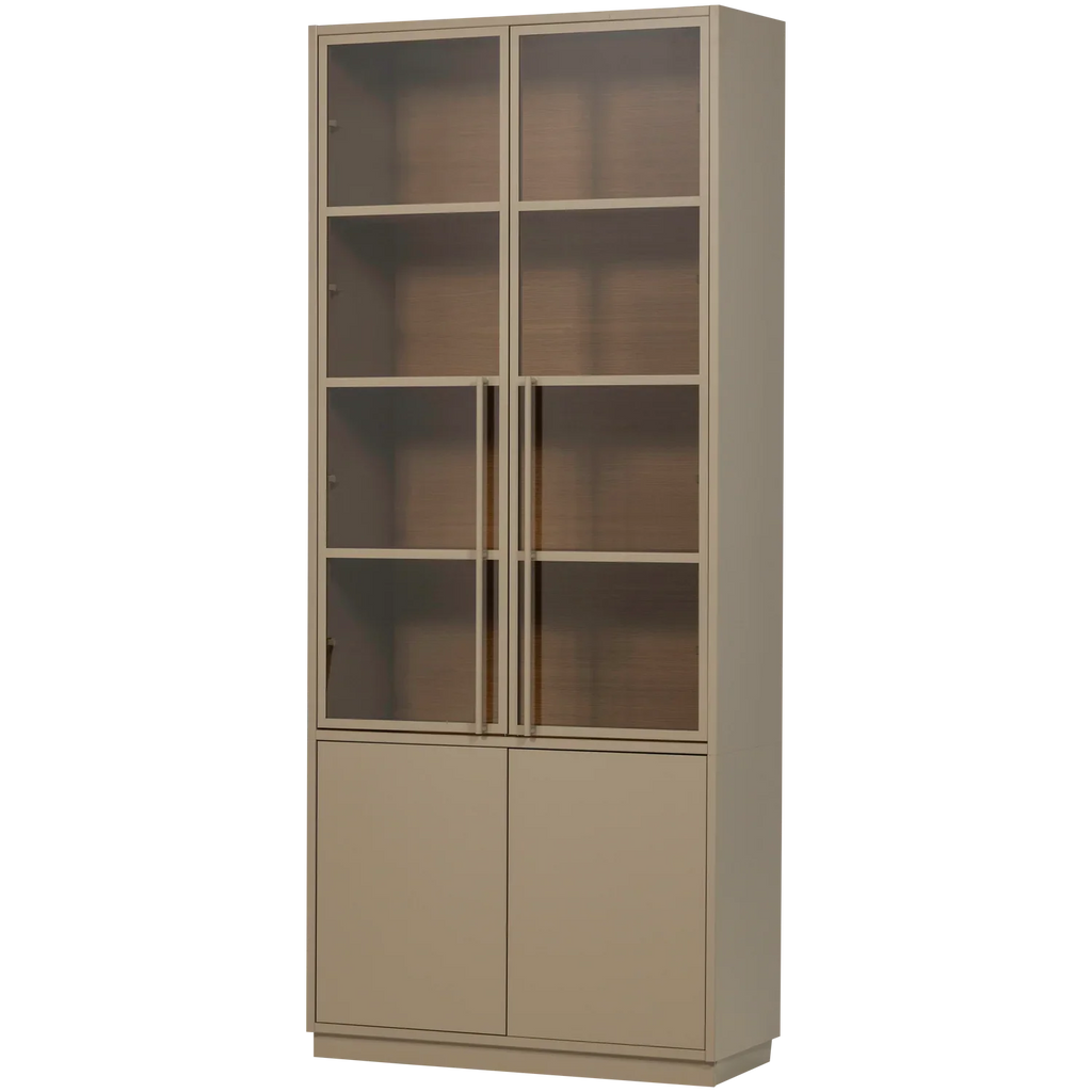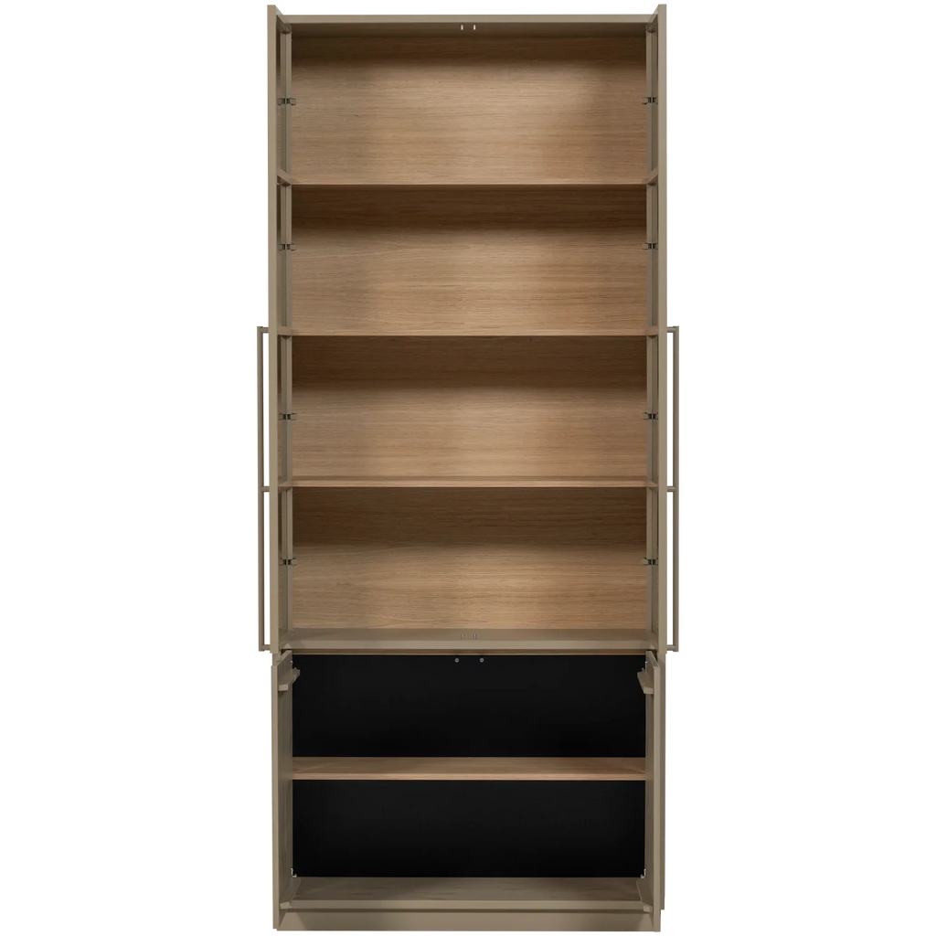 - Spacious sideboard - Made from FSC Mix certified pine wood and oak decor - Both open and closed compartments - H 236 cm x W 101 cm x D 40 cm The Casa sideboard from Dutch interior brand WOOOD is a real asset to your interior. The cabinet is finished in a fashionable mud color and fits effortlessly into a variety of living styles. The top offers four spacious compartments in which you can display your accessories in a stylish way. Behind the glass doors, the interior and back are finished in oak decor. The lower part of the cabinet creates space for items you prefer to keep out of sight. Practical and stylish, those are the characteristics of our Casa sideboard. Material The pine furniture in our collections is FSC-Mix certified and treated in various ways. The Casa, for example, is sanded and finished to a smooth and neat finish. Pine wood is characterized by visible flame and grain patterns. Melamine is a combination of paper and synthetic resin that is applied to chipboard or other smooth wood types using heat. Melamine can give a matte or glossy finish and is particularly strong. Melamine items are scratch-resistant, wear-resistant, and heat-resistant. The oak decor of the Casa is made of melamine. Dimensions - Height: 236 cm - Width: 101 cm - Depth: 40 cm - Height of top compartment: 39.3 cm - Height of middle compartment: 37.2 cm - Height of bottom compartment: 30.8 cm - Width of compartments: 96.4 cm - Depth of compartments: 37 cm - Leg height: 6 cm - Weight: 81 kg Maintenance Treated oak is very easy to maintain. Keep the furniture dust-free by regularly wiping it with a clean, dry cloth. Always use basic protection for wood, such as coasters under drinking glasses or hot pans. Untreated oak requires a thorough finish to prevent warping. This means that the furniture needs to be treated on all sides, including the underside. Stable and safe use For cabinets taller than 50 cm, we recommend paying extra attention to wall mounting. Installing fall prevention measures prevents accidents and keeps the cabinet from tipping over. Delivery The item is delivered in two packages and is easy to assemble using the included assembly instructions. To protect hard floors, place felt glides on the underside of the legs.