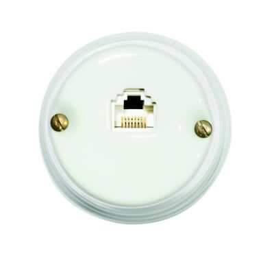Priză GI Gambarelli din portelan, finisaj alb. Piesă artizanală fabricată în Italia, concepută pentru instalații electrice aparente de tip vintage sau retro. Compatibilă cu toate componentele din gama GI Gambarelli. Montaj pe rozetă sau direct pe perete.