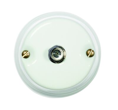 Priză GI Gambarelli din portelan, finisaj alb. Piesă artizanală fabricată în Italia, concepută pentru instalații electrice aparente de tip vintage sau retro. Compatibilă cu toate componentele din gama GI Gambarelli. Montaj pe rozetă sau direct pe perete.