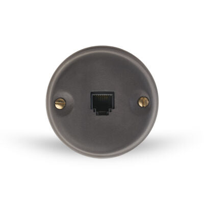 Priză GI Gambarelli din seria Ardesia din porțelan, finisaj antracit. Piesă artizanală fabricată în Italia, concepută pentru instalații electrice aparente de tip vintage sau retro. Compatibilă cu toate componentele din gama GI Gambarelli. Montaj pe rozetă sau direct pe perete.