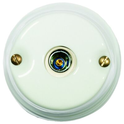 Priză GI Gambarelli din portelan, finisaj alb. Piesă artizanală fabricată în Italia, concepută pentru instalații electrice aparente de tip vintage sau retro. Compatibilă cu toate componentele din gama GI Gambarelli. Montaj pe rozetă sau direct pe perete.