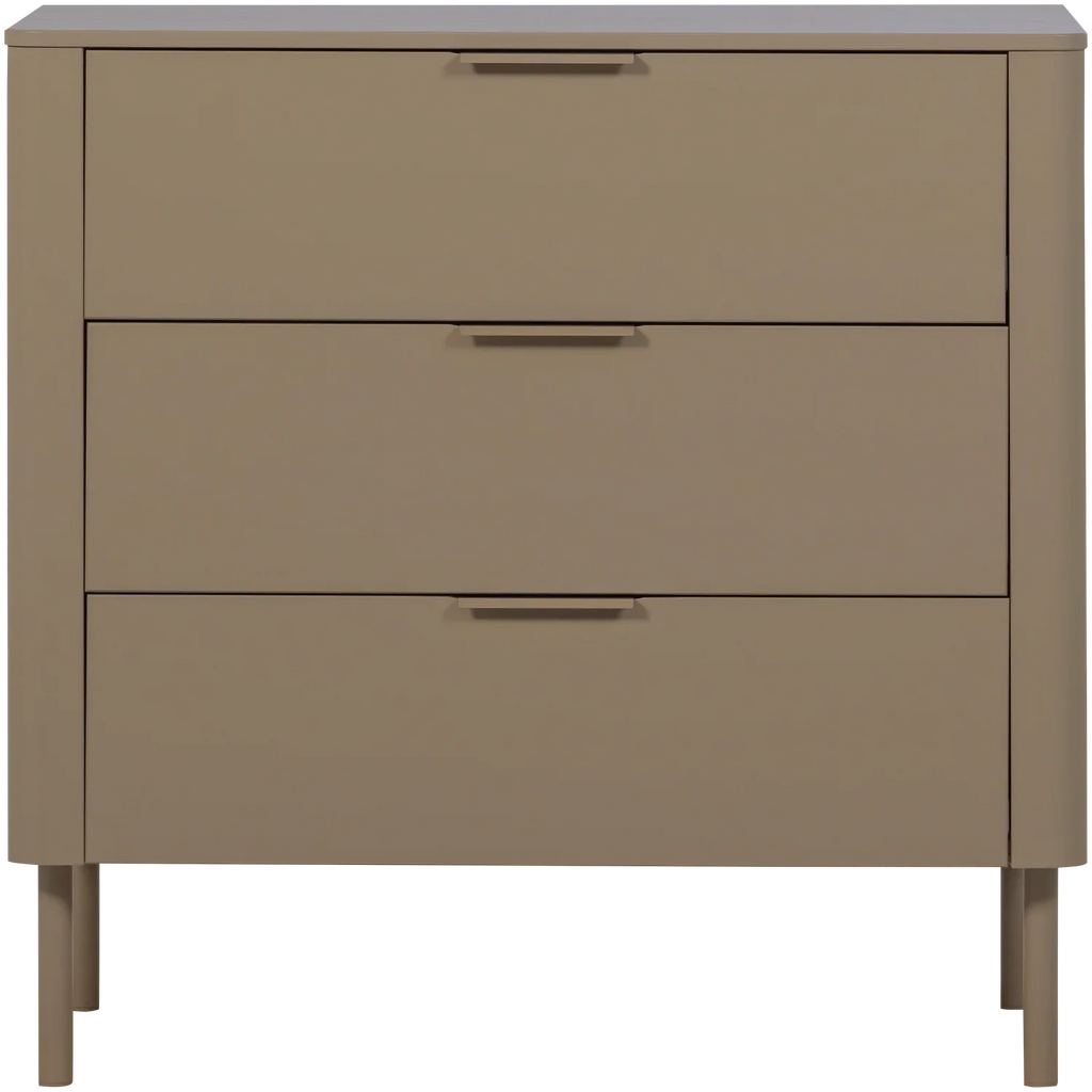 - Modern chest of drawers with timeless design - Made from FSC Mix-certified pine wood - Finished in a mud color - H 93 cm x W 94 cm x D 52 cm The Gunnar chest of drawers from Dutch interior brand WOOOD offers a stylish solution for extra storage space. The three spacious drawers with soft-close closure and subtle handles make it easy to store clothes or accessories. Thanks to its rounded corners, modern finish, and matte lacquer, the chest of drawers is not only functional but also an addition to any interior. The Gunnar chest of drawers is made of solid pine and has a timeless look. Material The pine furniture in our collections is FSC Mix certified and treated in various ways. For example, the pine material is sanded and finished with a beautiful, opaque lacquer. Pine wood is characterized by visible flame and grain patterns. Dimensions - Height: 93 cm - Width: 94 cm - Depth: 52 cm - Leg height: 20 cm - Shelf thickness: 1.5 cm - Weight capacity per drawer: 15 kg (distributed load) - Weight: 30.5 kg Maintenance The pine wood items in our collections are treated with an environmentally friendly, water-based varnish, which significantly extends the product's lifespan. Treated pine wood is easy to keep clean with a slightly damp cloth. To avoid rings and stains in the wood, it is recommended to dry damp spots immediately. Stable and safe use For cabinets taller than 50 cm, we recommend paying extra attention to wall mounting. Installing fall prevention prevents accidents and keeps the cabinet from tipping over. Delivery This piece of furniture is delivered in two packages and is easy to assemble using the supplied assembly instructions. To protect hard floors, place felt glides on the underside of the legs. Take extra care when installing the fall protection to prevent accidents.