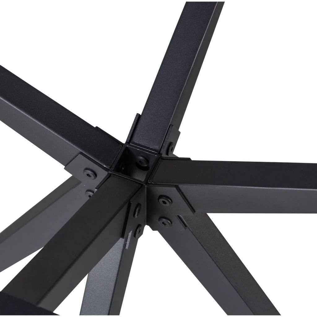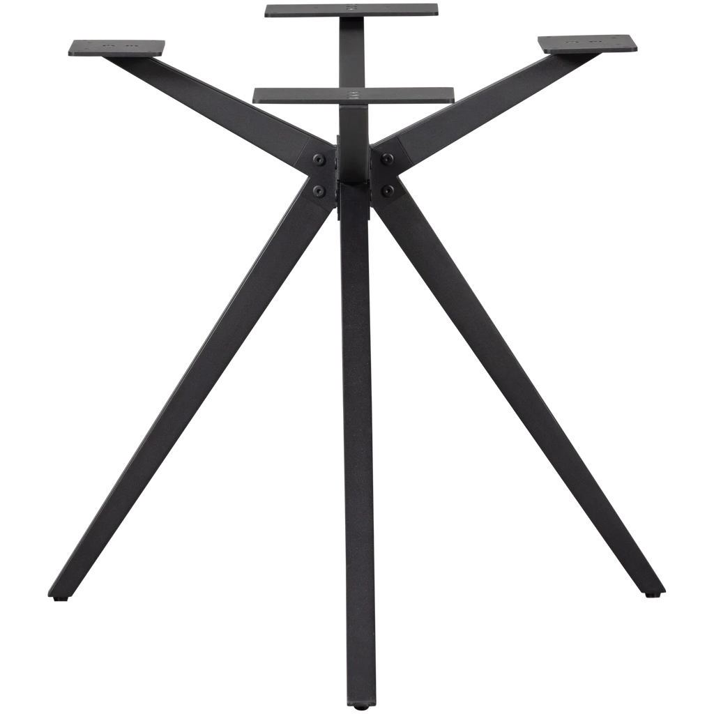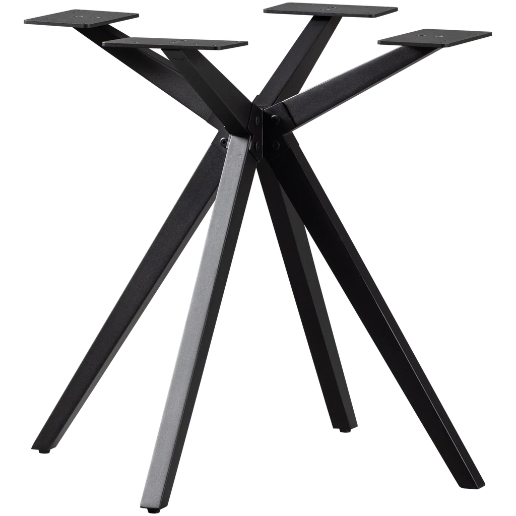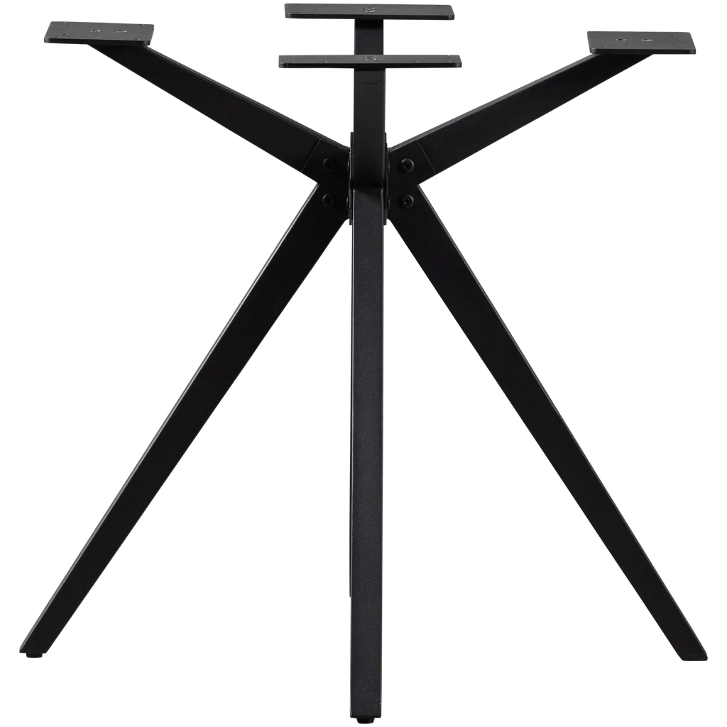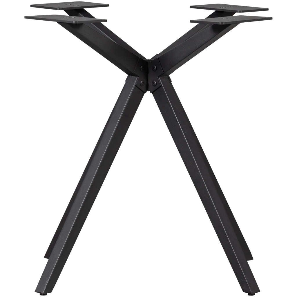 - Table leg with modern look - Made of metal with black powder coating - Part of the WOOOD Tablo series - H 72 cm x W 80 cm x D 80 cm Create your ideal dining area with the elements from the Tablo series by Dutch interior design brand WOOOD. Tablo has many combination possibilities and various sizes available to furnish your dining area exactly to your liking. Choose this generous cross leg for a coarse, sturdy and modern look in your interior. The massive cross leg provides space to sit freely at the table edges, so more visitors can fit at your dining table. The Holland cross leg is perfect for a round Tablo table top with a diameter of 120 cm. In addition, the cross leg is also suitable for a Tablo table top with a minimum size of 120 x 80 cm and a maximum size of 160 x 90 cm. Material The powder-coated metal provides a luxurious look and is protected for life. A powder coating is a paint that is attached to the metal using high temperatures. A powder coating ensures full color coverage and has a matte or (slightly) glossy finish. Dimensions - Height: 72 cm - Width: 80 cm - Depth: 80 cm - Leg height: 47 cm - Leg diameter: 3.5 cm - Weight: 18 kg - Max. weight: 120 kg Maintenance All our metals in the collection are thoroughly treated and thus do not require re-treatment. Treated metal is one easy to keep clean with a slightly damp cloth, drying the surface afterwards ensures a streak-free result. Delivery The item is delivered in one package and can be self-assembled using the supplied assembly instructions. To protect hard floors, place felt glides under the legs.