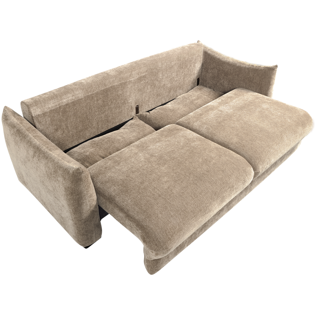 - A sofa and bed in one - Comfortable and soft fabric - Transforms in an instant - H 92 cm x W 233 cm x D 105 cm The Jonne sofa bed from Dutch interior brand WOOOD combines style, comfort, and functionality in one. During the day, you can enjoy a soft, inviting seat thanks to the luxurious chenille upholstery. In the evening, you can transform the sofa into a full-size bed in no time, ideal for guests or smaller living spaces. With its timeless design and rich chenille fabric, the Jonne adds warmth and atmosphere to any interior. Available in two colors, so you can always find the one that perfectly suits your living style. Material Cavero is a luxurious textured fabric with a wavy relief that instantly adds depth and character to any piece of furniture. The fabric feels soft yet has a firm grip, making it both comfortable and stylish. Cavero is made of 100% polyester and has a Martindale rating of 25,000. Dimensions - Height: 92 cm - Width: 233 cm - Depth: 105 cm - Depth when folded out into a bed: 152 cm - Seat height: 44 cm - Seat width: 192 cm - Seat depth with back cushion: 42 cm - Seat depth without back cushions: 65 cm - Armrest width: 16 cm - Armrest height from seat: 21 cm - Armrest height from floor: 65 cm - Weight: 102 kg - Maximum weight capacity: 220 kg Maintenance Keep Cavero looking its best by regularly vacuuming it with a soft upholstery brush. For stains, gently dab the area with a clean, slightly damp cloth. Avoid rubbing, as this can damage the fibers or flatten the texture. For stubborn stains, use a mild water-based detergent. To prevent discoloration, do not place furniture made with this fabric in direct sunlight for extended periods. For long-term protection, the fabric can be impregnated. Delivery The item is delivered in two packages. The item is easy to assemble using the clear assembly instructions. Place felt glides on the bottom to protect hard floors.