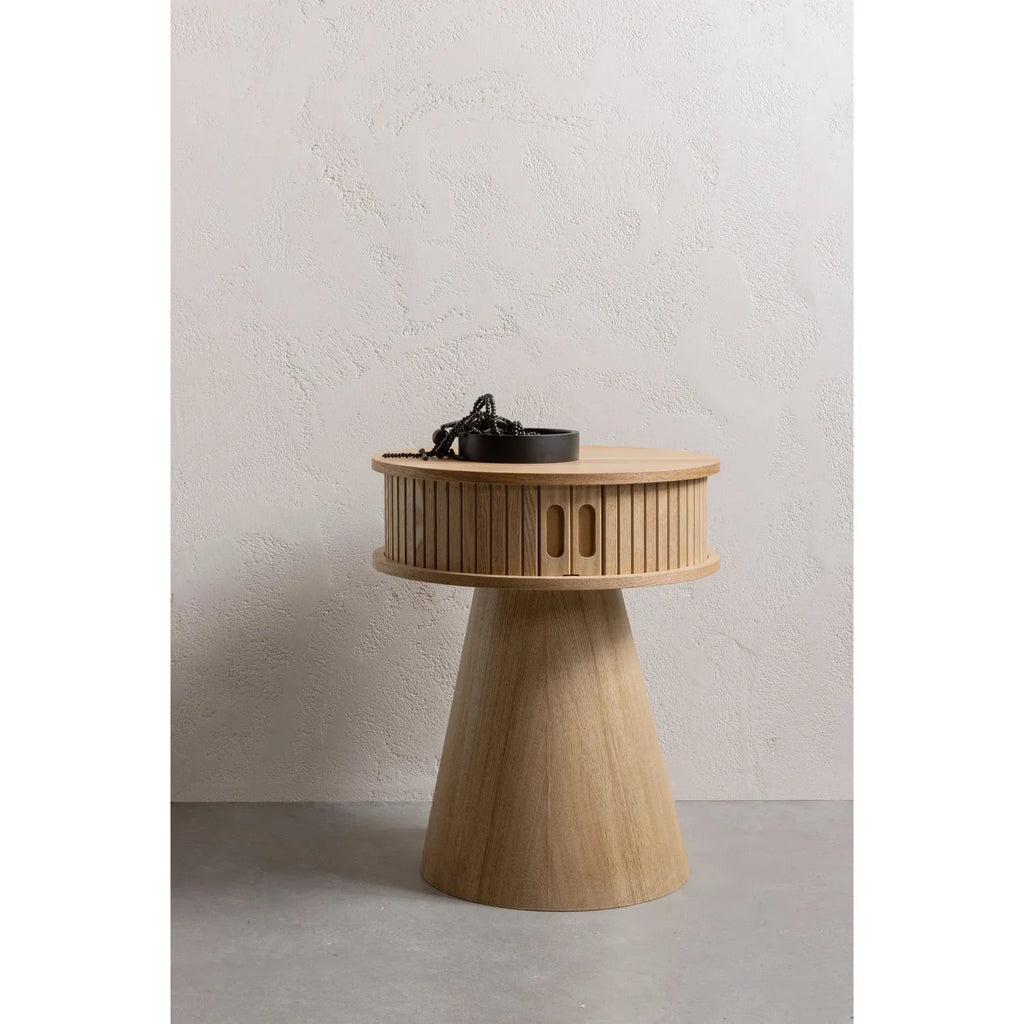 - Bedside table with unique design - Made of poplar wood - Fitted with handy storage space - H 46 cm x W 38 cm x D 38 cm The Karri bedside table comes from the collection of Dutch interior design brand WOOOD and is stylish with its unique design. Made of poplar wood, the cabinet offers a warm, natural look that blends seamlessly with different interior styles. Moreover, the Karri bedside table offers practical storage space behind the sliding doors. The thoughtful layout ensures that your essentials are always within easy reach, while keeping your bedroom neat and organised. Features Poplar wood is known for its straight grain markings and even texture, making it a particularly attractive material for a variety of applications. The wood is light in colour and has a smooth finish, contributing to an elegant look. The straight grain drawing creates a uniform look, while the consistent texture makes machining and finishing easy. Dimensions - Height: 46 cm - Width: 38 cm - Depth: 38 cm - Max load weight: 10 kg - Weight: 4.8 kg Maintenance Treated poplar is easy to clean with a slightly damp, clean cloth. In case of stubborn stains, poplar can easily be re-treated. The poplar wood in our collections is not suitable for outdoor placement. Delivery The bedside table is delivered in one package. To protect hard floors, place felt glides on the underside of the side table.