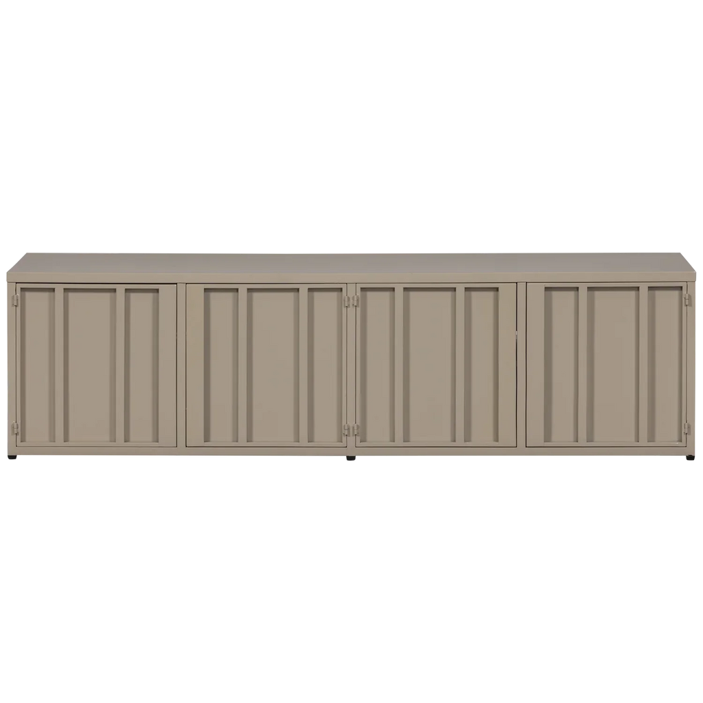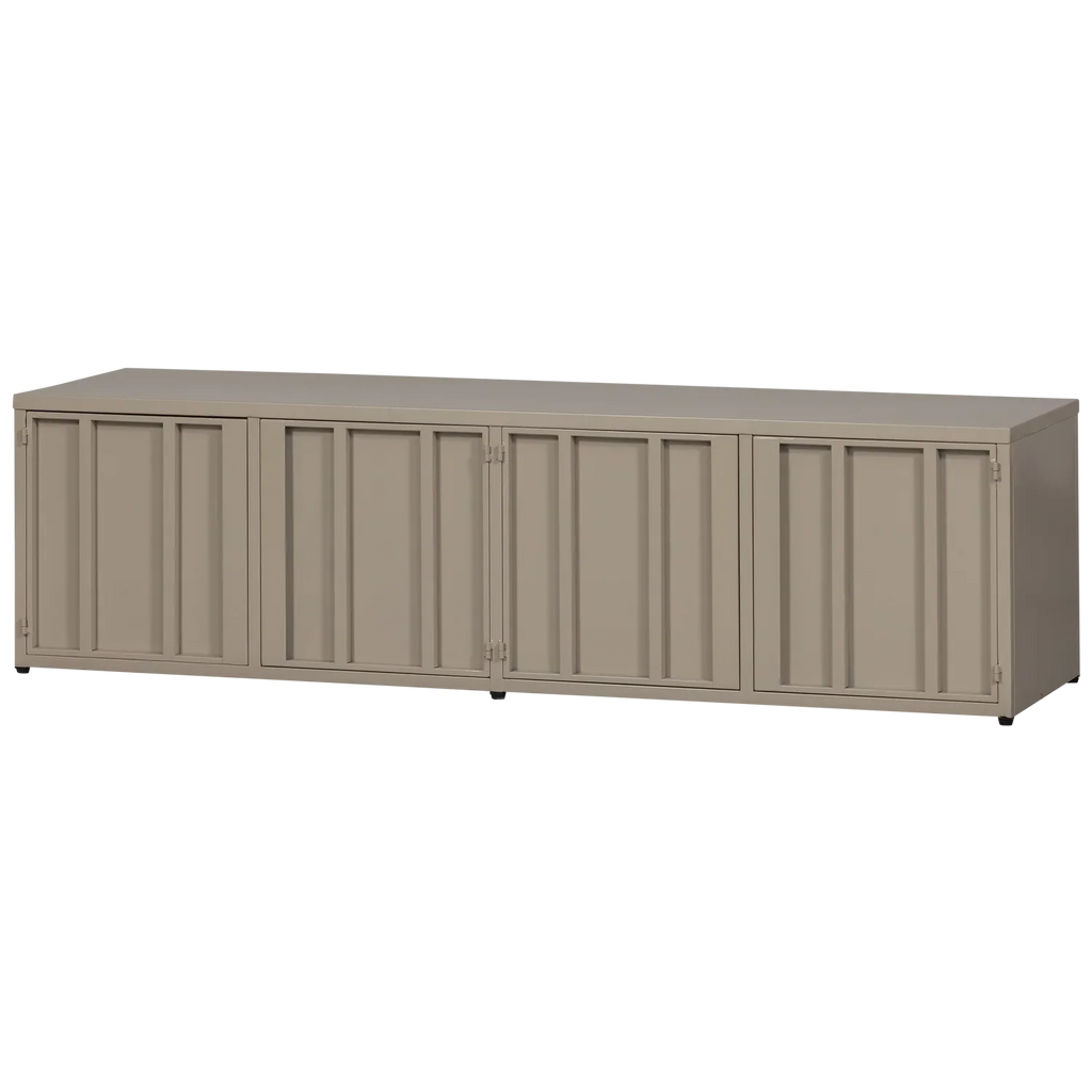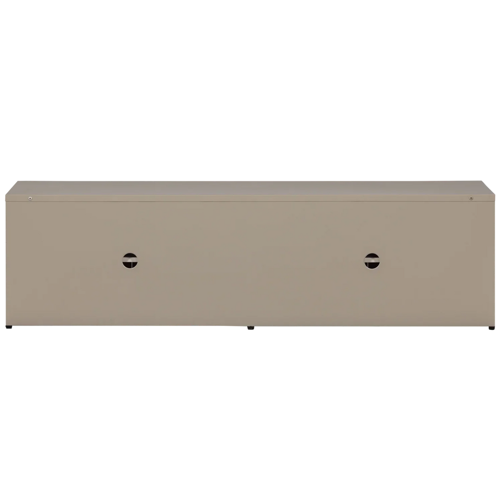 - Stylish TV cabinet - Timeless design - Made of metal - H 44 cm x W 160 cm x D 44 cm Get a unique cabinet creation in your home with this Level TV cabinet. This TV cabinet comes from the collection of the Dutch interior design brand WOOOD. Get a warm and stylish atmosphere in your home with this item. Because the Level contains several cabinets with doors, you can easily store accessories. This TV cabinet has two cord openings at the back, so that cords and cables can be kept out of sight. Material The powder-coated metal provides a luxurious look and is protected for life. A powder coating is a paint that is bonded to the metal using high temperatures. A powder coating provides full color coverage and has a matte or (slightly) glossy finish. Dimensions - Height: 44 cm - Width: 160 cm - Depth: 44 cm - Door frame thickness: 2 cm - Compartment width: 41 cm - Shelf height: 38.5 cm - Shelf thickness of compartments: 1.7 cm - Shelf thickness: 2.5 cm - Weight per shelf: 10 kg - Weight per shelf: 30 kg - Max. weight: 80 kg Maintenance All our metals in the collection have been thoroughly treated and therefore do not require re-treatment. Treated metal is one easy to keep clean with a slightly damp cloth, drying the surface afterwards ensures a streak-free result. Delivery The item is delivered in one package, fully assembled. To protect hard floors, place felt glides under the legs.