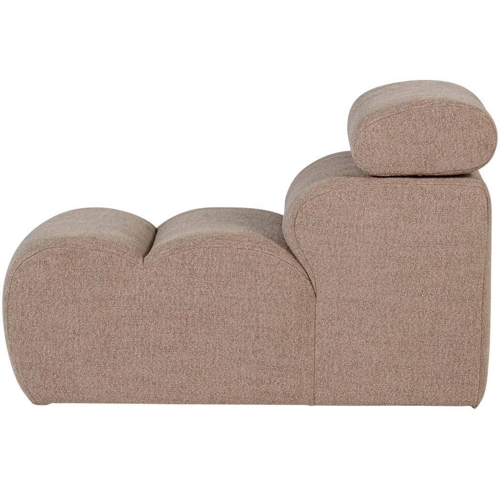 - Stylish element sofa - Tellable neck support - Unique and creative design - H 86 cm x W 82 cm x D 113 cm Enjoy luxury with the Novi series from Dutch interior design brand WOOOD. Whether you opt for a spacious chaise longue or a compact two-seater sofa, the Novi series makes it easy to put together the perfect sofa for your living room. Just when you think this design couldn't get any better, the adjustable neck support takes your comfort to the next level. One thing is certain: the Novi is guaranteed to be the eye-catcher in your interior. Material Our Rilo is a soft boucle fabric.The composition is 100% polyester, which makes the Rilo fabric both sturdy and comfortable. The fabric has a Martindale rating of 100,000, making it suitable for everyday use. With proper care, this fabric will retain its beautiful quality for years. Dimensions - Height: 86 cm - Width: 82 cm - Depth: 113 cm - Seat height: 45 cm - Seat width: 82 cm - Seat depth: 63 cm - Leg height: 3.5 cm - Weight: 26 kg - Load capacity: 120 kg Maintenance Keep it clean by vacuuming regularly. Use a vacuum with a soft brush to avoid damaging the structure. Stains? Use a water-based solution to gently remove the stain and then wipe again with a slightly damp cloth. Don't rub, just dab! Rubbing can cause damage or permanent stains in the fabric. Avoid prolonged exposure to direct sunlight to best preserve the quality of the fabric. Delivery The elements are easy to assemble using the already mounted crocodile jaws. For hard floors, place felt glides under the legs. This prevents damage to the floor.