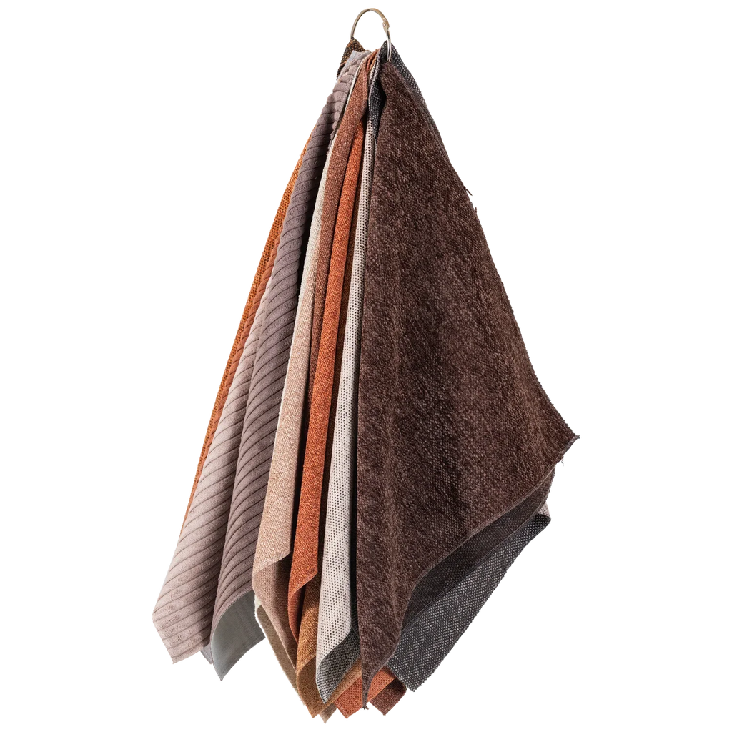 - Rilo (100% polyester) - Vasa (100% polyester) - Ronni (88% polyester and 12% polyacrylic) Features Our Rilo is a fine boucle fabric. It is made from 100% polyester, which makes the Rilo fabric both sturdy and comfortable. The fabric has a Martindale value of 100,000, making it suitable for everyday use. With the right care, this fabric will retain its beautiful quality for years to come. Our Vasa is a woven fabric with a subtle melange effect. It is made of 100% polyester, which makes the fabric both sturdy and comfortable. The fabric has a Martindale value of 30,000. With proper care, our Vasa fabric will retain its beautiful quality for years to come. The Ronni rib fabric is a super trendy fabric; Ronni is stylish and comfortable! Our soft Ronni rib fabric is made of 88% polyester and 12% polyacrylic. This combination makes the rib fabric very easy to maintain, and with a Martindale of 100,000, you don't have to worry about scratches or pilling. The rib fabric has a reinforced backing and looks voluminous due to its woolly stripes. Care instructions for Rilo and Vasa fabric: Keep the fabric clean by vacuuming regularly. Use a vacuum cleaner with a soft brush to avoid damaging the structure. Stains? Use a water-based solution to gently remove the stain and then wipe with a slightly damp cloth. Do not rub, but dab! Rubbing can cause damage or permanent stains in the fabric. Avoid prolonged exposure to direct sunlight to maintain the quality of the fabric. Care instructions for Ronni rib fabric: When cleaning rib fabric, always remove stains in the direction of the rib. Dabbing with a slightly damp, clean cloth will remove most stains easily. Is the stain more stubborn? Let a damp cloth absorb the stain. Brushing with a soft brush afterwards will ensure that the rib fabric remains wonderfully soft to the touch.