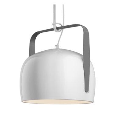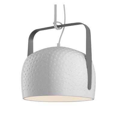 Pendulul Bag, cu un difuzor mare și un mâner distinctiv din metal gri, care combină funcționalitatea cu un design contemporan și este ideală pentru a adăuga o notă de eleganță oricărui spațiu interior.
