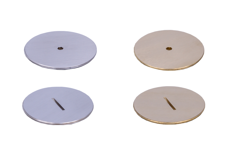 Material Capacă (Lid): Alamă brută periată (Brushed raw brass) sau Oțel inoxidabil 316L brut periat (Brushed raw 316L stainless steel).