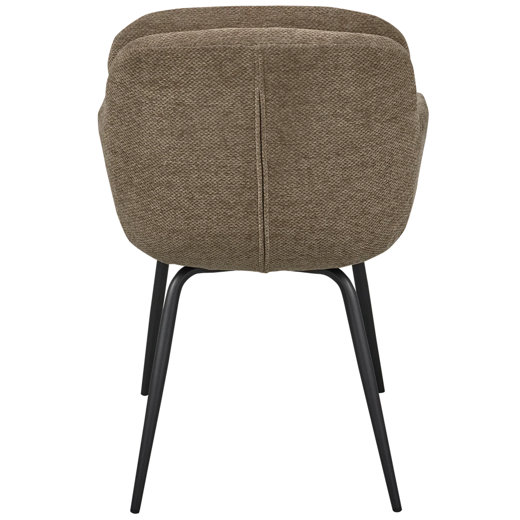 - Accessible dining chair with friendly design - Comfortable, firm seat - Striking fabric thanks to luxurious light reflection and matt sheen - H 82 cm X W 57 cm X D 59 cm With the Runa dining chair by Dutch brand WOOOD, you bring a wonderfully comfortable seat into your home. The chair is upholstered in chenille fabric and has a slim black metal base. The rounded design gives the chair a friendly and luxurious look. The slightly shiny chenille fabric adds softness and makes Runa the eye-catcher in your dining area. Material Our Sky chenille has a striking structure that gives a luxurious look. The addition of chenille adds a subtle sheen and a soft, pleasant grip. The fabric is made of 100% polyester, and has a Martindale of 25,000. The light hues in the fabric give the piece of furniture a beautiful depth. Dimensions - Height: 82 cm - Width: 57 cm - Depth: 59 cm - Seat height: 48 cm - Seat width: 39 - 45 cm - Seat depth: 41 cm - Armrest height: 18 cm - Armrest width: 6 cm - Armrest spacing: 48 cm - Backrest height: 38 cm - Backrest width: 37 - 47 cm - Depth of backrest: 9 cm - Leg height: 40.5 cm - Leg thickness: 1 - 3 cm - Leg spacing: 24 - 46 cm - Carrying weight: 120 kg - Weight: 7.3 kg Care instructions In case of stains, dry immediately with a clean cloth or tissue. For stubborn stains, dab with a damp cloth and, if necessary, use a neutral furniture shampoo. If the fabric is removable, it can be washed at 30 degrees or dry-cleaned. Over time, a shiny seat surface may appear on the favourite seat. Delivery The item is delivered per 2 pieces with a minimum purchase of two pieces. Place felt protectors on the underside to protect the surface.