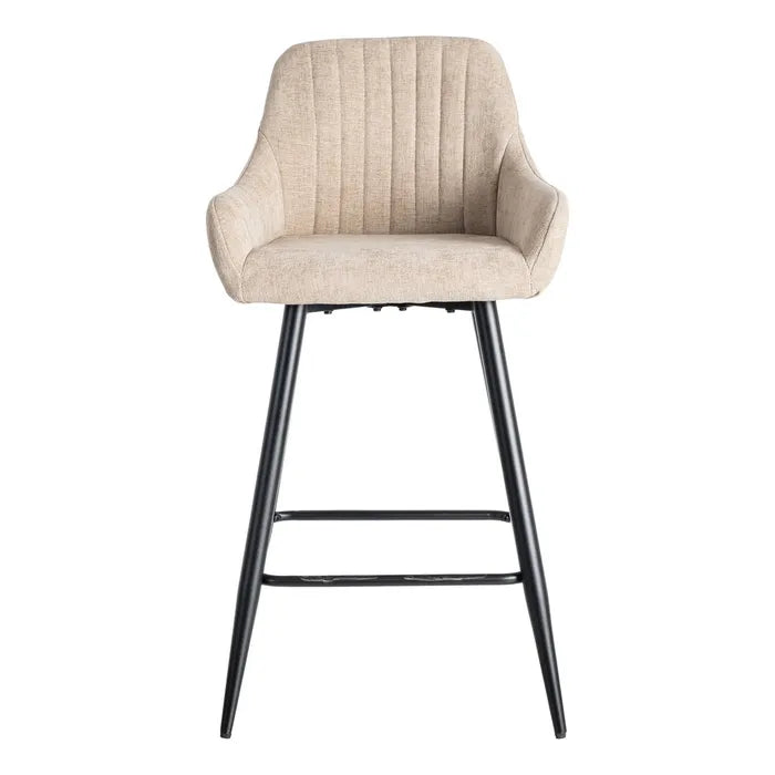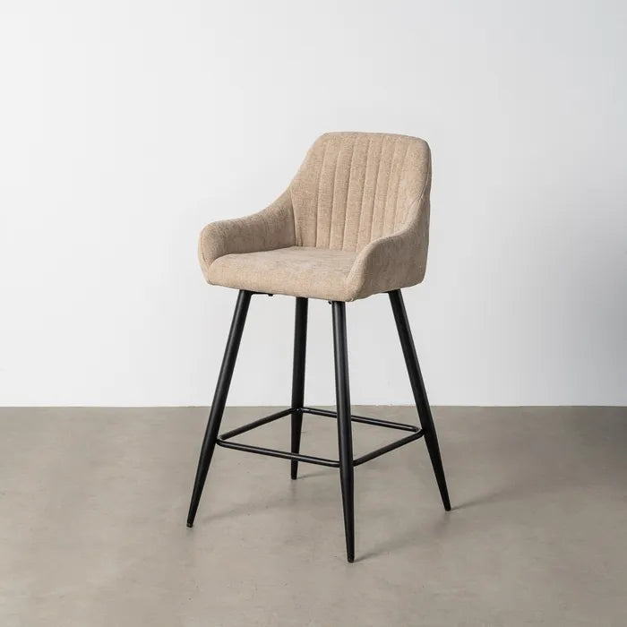 Adaugă o notă modernă și elegantă spațiului tău de luat masa cu acest scaun de bar tapițat, ideal pentru a completa o insulă de bucătărie sau un blat de bar. Designul său minimalist, în nuanța neutră de bej, se integrează perfect în orice decor, de la cel industrial la cel contemporan, oferind un echilibru între funcționalitate și stil.