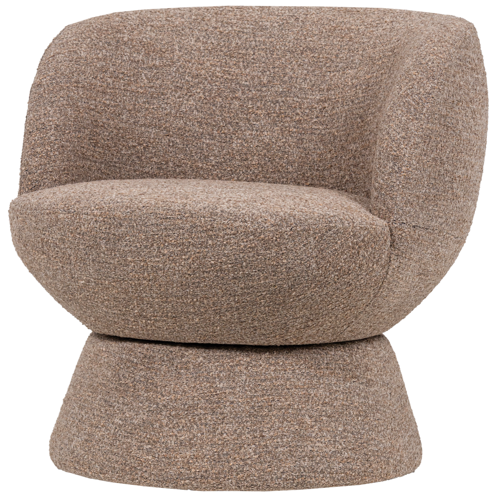 - Friendly swivel armchair with round shapes - Coarsely woven fabric with irregular weave pattern - Turn in any direction! - H 72 cm x W 73 cm x D 71 cm The Shuffle swivel armchair comes from the collection of the Dutch brand WOOOD and has a friendly, soft appearance. The seat and base form an hourglass figure and are covered from head to toe with a coarsely woven fabric with luxurious light reflection. Material This luxurious melange fabric is made from 100% polyester and has a soft feel. The subtle colour variations give the fabric a stylish look. The Clip fabric has a Martindale value of 20,000. Dimensions - Height: 72 cm - Width: 73 cm - Depth: 71 cm - Seat height: 43 cm - Seat width: 63 cm - Seat depth: 52 cm - Backrest height: 32/27 cm - Leg height: 22 cm - Leg circumference: 58 cm - Carrying weight: 150 kg - Weight: 15 kg Maintenance Small stains can be easily removed with a damp cloth. For stubborn stains, it is recommended to dab the fabric with a slightly damp cloth and then allow it to dry thoroughly. Avoid prolonged exposure to direct sunlight to prevent discolouration of the fabric. Delivery The armchair is delivered in one package. To protect hard floors, place felt glides on the underside to prevent damage.