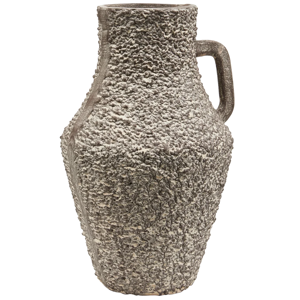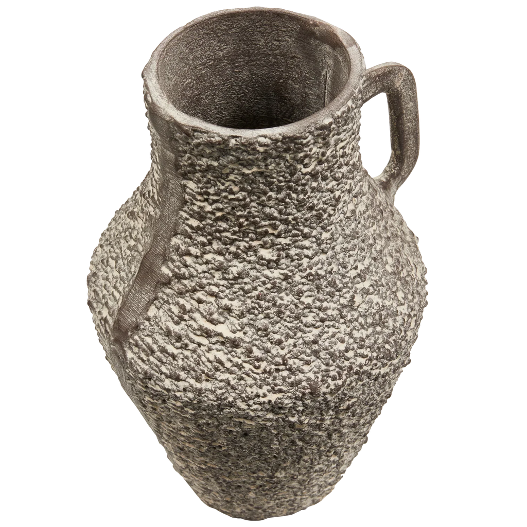 - Made of aluminium - Stylish vase - Vintage look - H 23 cm X W 16 cm X D 14 cm This stylish Tabia vase is a showpiece from the Exclusive collection by Dutch brand WOOOD. The Tabia vase is made of aluminium and has a beautiful brown finish with a vintage look. The vase retains the beautiful shape of the coastal or dry bouquet thanks to the narrow opening at the top. But even without a bouquet, this vase brings the necessary atmosphere. As a centrepiece on a table or as an accent on a shelf, the Tabia vase adds a touch of sophistication to any room. Note: the vase is not completely waterproof and therefore not suitable to be filled with water. Material Aluminium is a very suitable type of metal for furniture development because of its light weight, strong composition and flexibility. The aluminium in our collections has various treatments and finishes, such as welding, stamping, powder coating or wet painting. This gives the aluminium item a chic look or even a weathered, aged look. Aluminium is anti-corrosive and therefore also very suitable for outdoor use. Dimensions - Height: 23 cm - Width: 16 cm - Depth: 14 cm - o Opening vase: 5.5 cm - Weight: 1.2 kg Maintenance All aluminium items in the collection have been thoroughly treated and therefore do not require re-treatment. Should the aluminium be damaged, please consult a specialised paint shop. Treated aluminium is easy to keep clean with a slightly damp cloth and a mild detergent, drying the surface afterwards ensures a streak-free result. Delivery The vase is delivered per four pieces. To protect the article and the surface, place felt glides on the underside to prevent scratching.