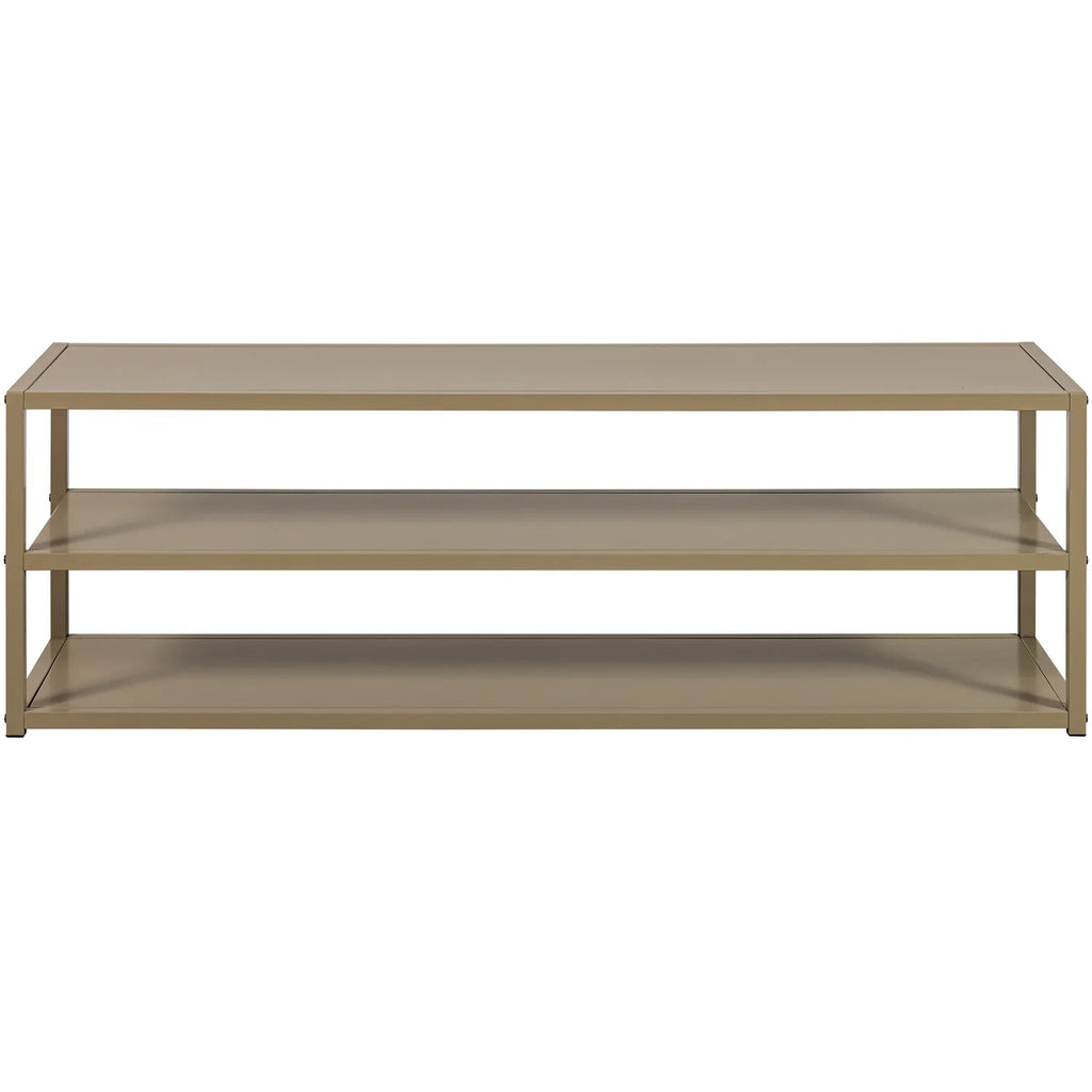 - Minimalist industrial style - Ideal storage in a timeless design - Made of metal - H 40 cm x W 120 cm x D 35 cm This stylish TV cabinet comes from the collection of Dutch interior design brand WOOOD and looks very airy thanks to its open design. The Teun TV furniture stands out with its attractive colour and offers versatile storage options, ideal for displaying your most beautiful accessories and organising your media equipment. Material The metal in our collections has various finishes, such as: powder-coated. A powder coating gives a luxurious look and protects the metal for life. A powder coating is a lacquer that is attached to the metal using high temperatures. Powder coating ensures full colour coverage and has a matt or (slightly) glossy finish. Dimensions - Height: 40 cm - Width: 120 cm - Depth: 35 cm - Frame thickness: 2 cm - Compartment height: 17 cm - Compartment width: 120 cm - Loading weight per shelf: 20 kg - Capacity of upper shelf: 30 kg - Weight: 11.5 kg Maintenance All our metals in the collection have been thoroughly treated and therefore do not require re-treatment. Should the metal be damaged, consult a specialised paint shop. Treated metal is easy to clean with a slightly damp cloth and a mild detergent, drying the surface afterwards ensures a streak-free result. Delivery The shelf unit is delivered in one package and is easy to assemble using the assembly instructions provided. To protect hard floors, place felt glides on the underside of the frame to prevent damage.