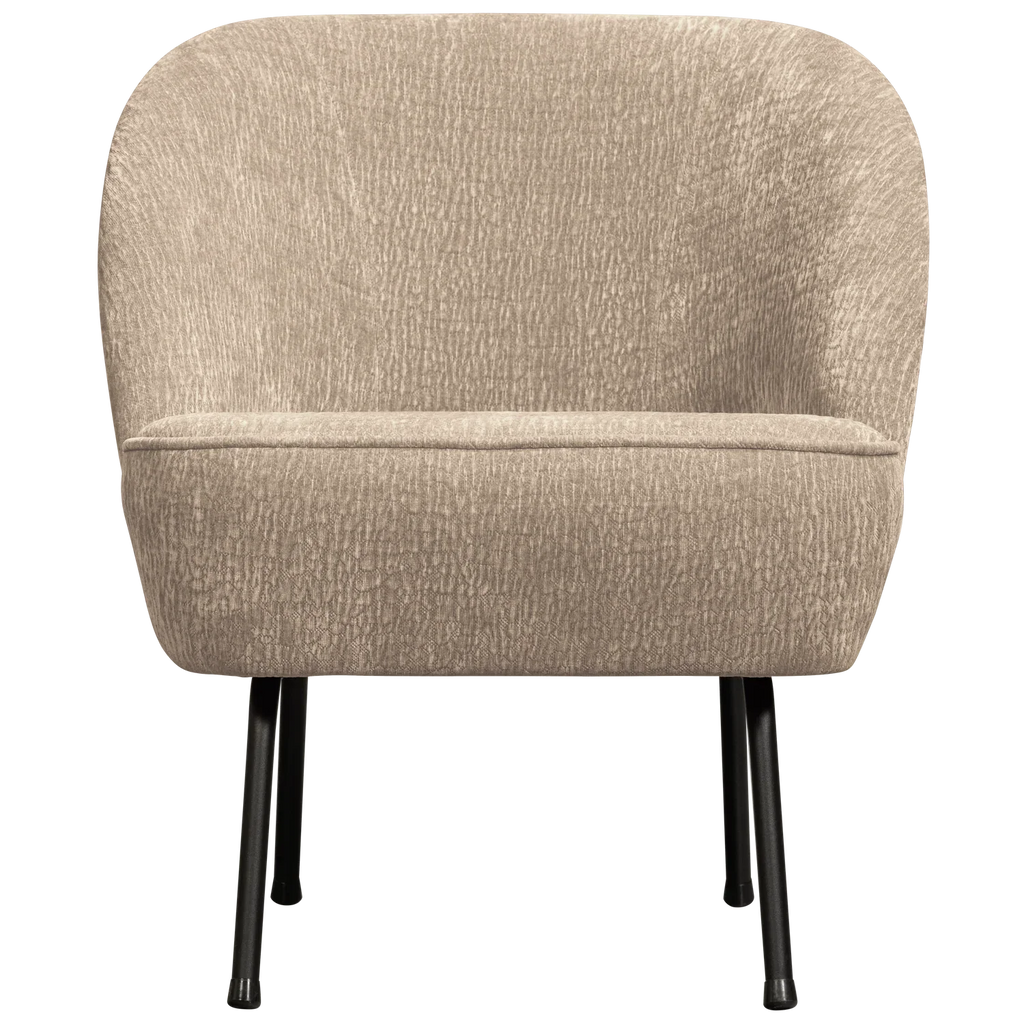 - Stylish, comfortable armchair - Friendly, soft shapes - Chenille textured fabric with 3D effect (100% polyester) - H 69 cm x W 57 cm x D 70 cm With the Vogue easy chair from the WOOOD collection you get a stylish easy chair in your home. This cool, timeless chair has a very comfortable seat. A real asset! Relaxing has never been so stylish. Material Our Drew textured fabric has a soft grip and a comfortable feel. Made of 100% polyester, the fabric stands out for its unusual 3D pattern with an irregular, wavy print, which creates a telling depth to the furniture piece. In addition, the fabric features a luxurious matte sheen which provides a high-quality look. The fabric has a martindale of 100,000. The base of the Vogue armchair is made of metal with a matt black powder coating. The frame of the seat is made of a combination of chipboard and plywood. The seat contains elastic straps and a T3542 foam which provides a slightly firm seating position that is comfortable for hours. The backrest is filled with T2120 foam. Dimensions - Height: 69 cm - Width: 57 cm - Depth: 70 cm - Seat height: 44 cm - Seat depth: 54 cm - Seat width: 54 cm - Leg height: 22.5-25 cm - Leg thickness: O 2 cm - Weight: 11.5 kg - Carrying capacity: 90 kg Maintenance The compact woven fabric is easy to clean with a hoover and furniture brush. In case of any stains, dry immediately with a clean cloth or tissue. Definitely do not rub! Most liquids can be removed with lukewarm water. Use a gentle circular motion from the outside inwards. For long-term protection against stains, the fabric can be impregnated. When using impregnation, the fabric can be treated with iProteqt brand for optimal protection. This textile protector makes the upholstery fabric resistant to oil-, water- and grease-based liquids. It is recommended to do this as soon as possible after receipt to ensure instant protection. Delivery The chair will be delivered in one package. The legs are easy to assemble by yourself using the supplied assembly instructions. To protect hard floors, place felt glides under the legs (2 cm round), this prevents damage.