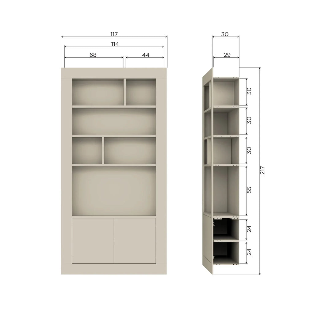 - Generous wall cabinet - Made of pine wood [FSC Mix] - A stylish display space for your finest accessories - H 229 cm x W 117 cm x D 31 cm A true eye-catcher that you, your friends and family will absolutely love. That's one thing for sure with our Wallcover. The Wallcover wall cabinet comes from the collection of the Dutch interior design brand vtwonen and is made of FSC-MIX certified pine. Present your most beautiful home items in the compartment cabinet and discover a sea of storage space behind the stylish doors. This timeless wall cabinet is guaranteed to become your favorite item in the living room, study or any other place in the house. Extra fun: you can also mount the item mirrored, so it fits perfectly into your interior. Material The pine furniture in our collections is FSC-Mix certified and treated in various ways. For example, this Wallcover is sanded and smooth and neatly finished. Pine wood is characterized by visible flame and grain marks. Dimensions - Height: 229 cm - Width: 117 cm - Depth: 31 cm - Shelf thickness open compartment: 2.4 cm - Shelf thickness behind door: 1.8 cm - Weight: 55 kg. -Weight of shelves: 30 kg Maintenance The pine items in our collections are treated with an environmentally friendly, water-based lacquer which significantly prolongs the life of the product. Treated pine wood is easy to keep clean with a slightly damp cloth. To avoid rings and marks in the wood, it is recommended to dry damp stains immediately. Stable and safe use For cabinets taller than 50 cm, we recommend paying extra attention to wall mounting. Drop prevention mounting prevents accidents and preserves the cupboard from tipping over. Delivery The article is delivered in two packages and is easy to assemble using the supplied assembly instruction. To protect hard floors, place felt glides on the underside of the cabinet.
